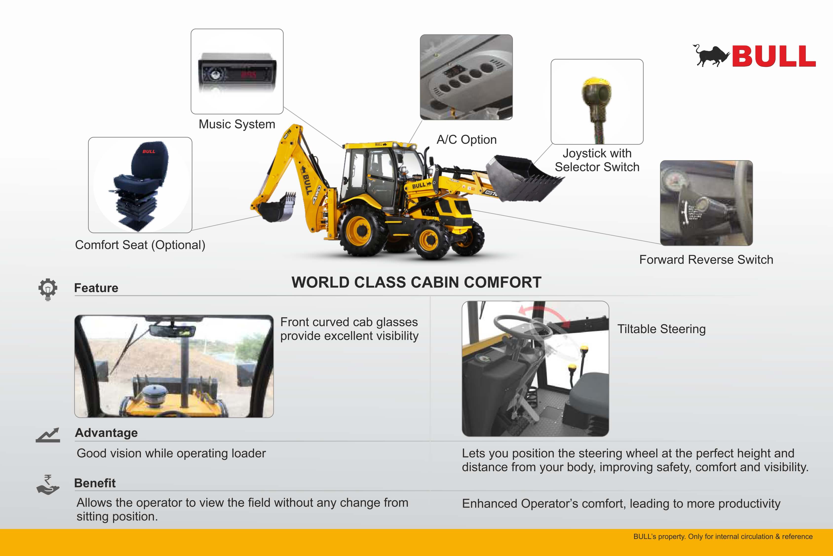 BULL SD76 BS4 CHAMPION comes with CARRARO synchro-shuttle transmission that provides superb drive power in all conditions. it consists of a 4-speed fully synchromesh gearbox with integral torque convertor and electrically operated forward & reversing shuttle.